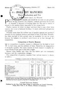 - Number 641, Series War Emergency Bulletin 117 - Poultry Manures, Their Production and Use: Cornell extension bulletin