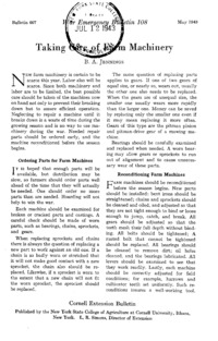 - Number 607, Series War Emergency Bulletin 108 - Taking Care of Farm Machinery: Cornell extension bulletin