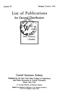- Number 47, Edition Revised - List of Publications for General Distribution: Cornell extension bulletin