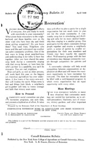 - Number 494, Series War Emergency Bulletin 13 - Wartime Recreation: Cornell extension bulletin