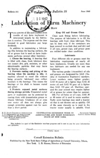 - Number 511, Series War Emergency Bulletin 28 - Lubrication on Farm Machinery: Cornell extension bulletin