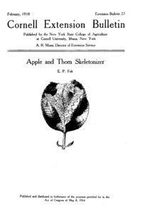 - Number 27 - Apple and Thorn Skeletonizer: Cornell extension bulletin